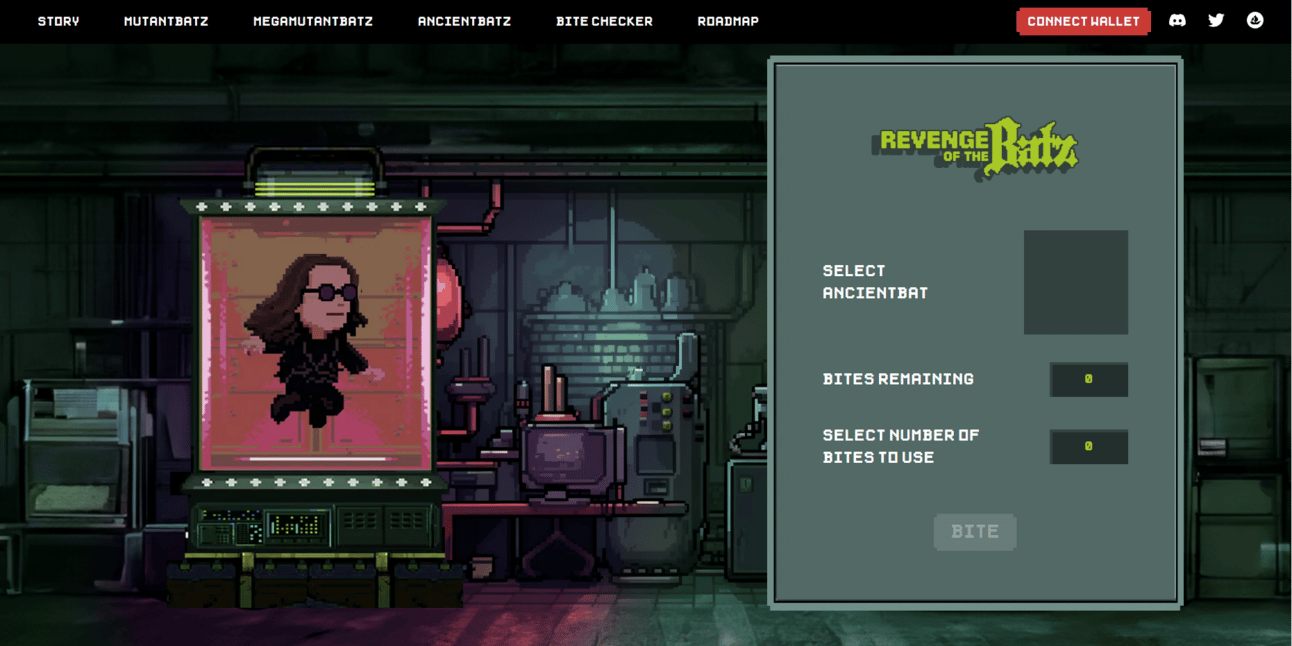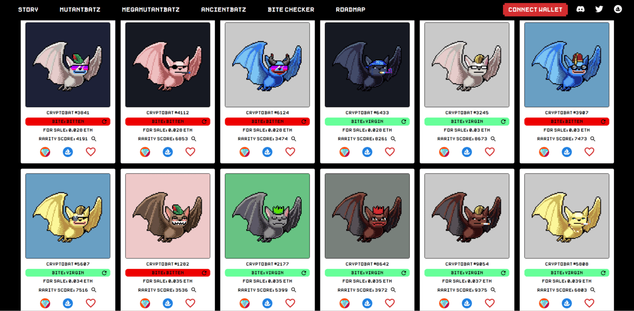 The Mega MutantBatz NFT is created by taking a CryptoBatz NFT and ‘biting’ an owned blue-chip ‘victim’ NFT project that’s in the same crypto wallet. The participating NFT collections are the Bored Ape Yacht Club (BAYC), Cryptodadz, Supducks, and the Alien Frens & Cyberkongz. With only one bite per NFT, the choice is final, but resulting in truly unique results.